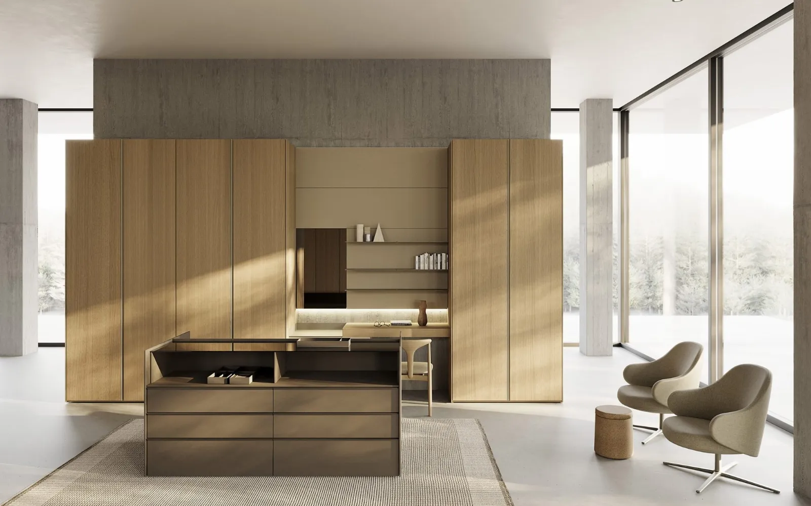 Se desideri una zona del riposo ammobiliata al meglio, scegli l'armadio Aria Gola con ante battenti di Kristalia!