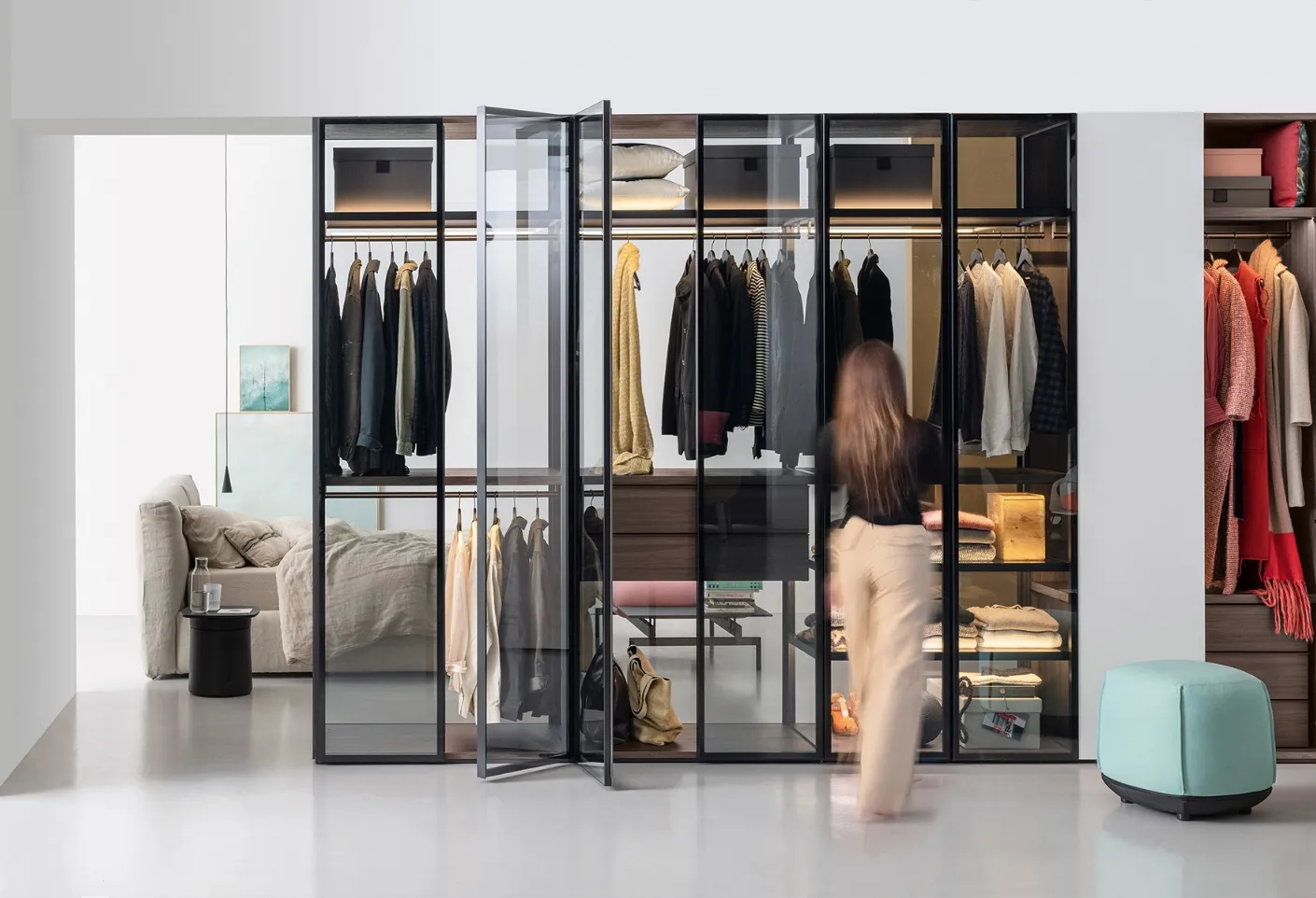 Se vuoi armadi componibili con ante battenti, clicca e scopri l'armadio Aria Telaio di Kristalia in vetro.