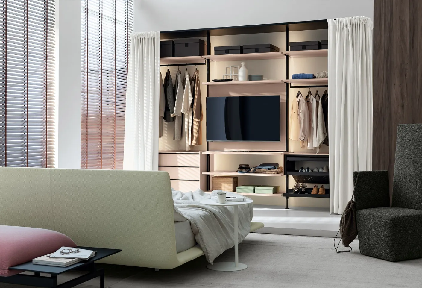 Cerchi un guardaroba in laccato opaco? Clicca e scopri armadiature cabine armadio con ante scorrevoli di Kristalia.