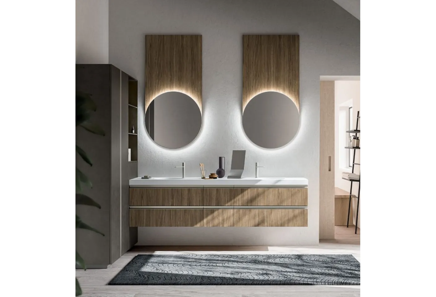 mobili bagno sospesi in melaminico della marca Cerasa: clicca e scopri l'arredo bagno moderno Cartabianca 03 per la stanza del benessere.