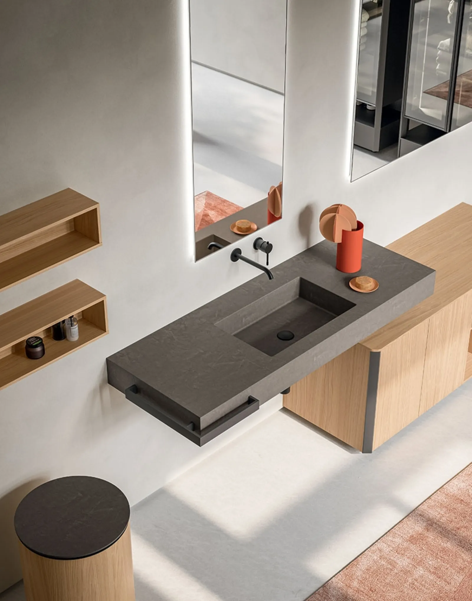 Scopri di più sull'arredo bagno design: mobili bagno a terra in legno come il modello Honey 04 di Cerasa ti aspettano.