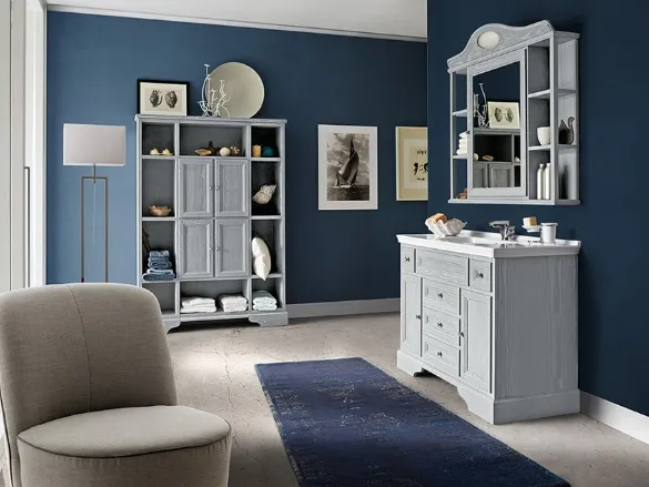 Mobili bagno a terra Paestum in laccato Decape Grigio Chiaro di Cerasa: scopri l'Arredo Bagno in laccato opaco classico e arreda il tuo bagno.