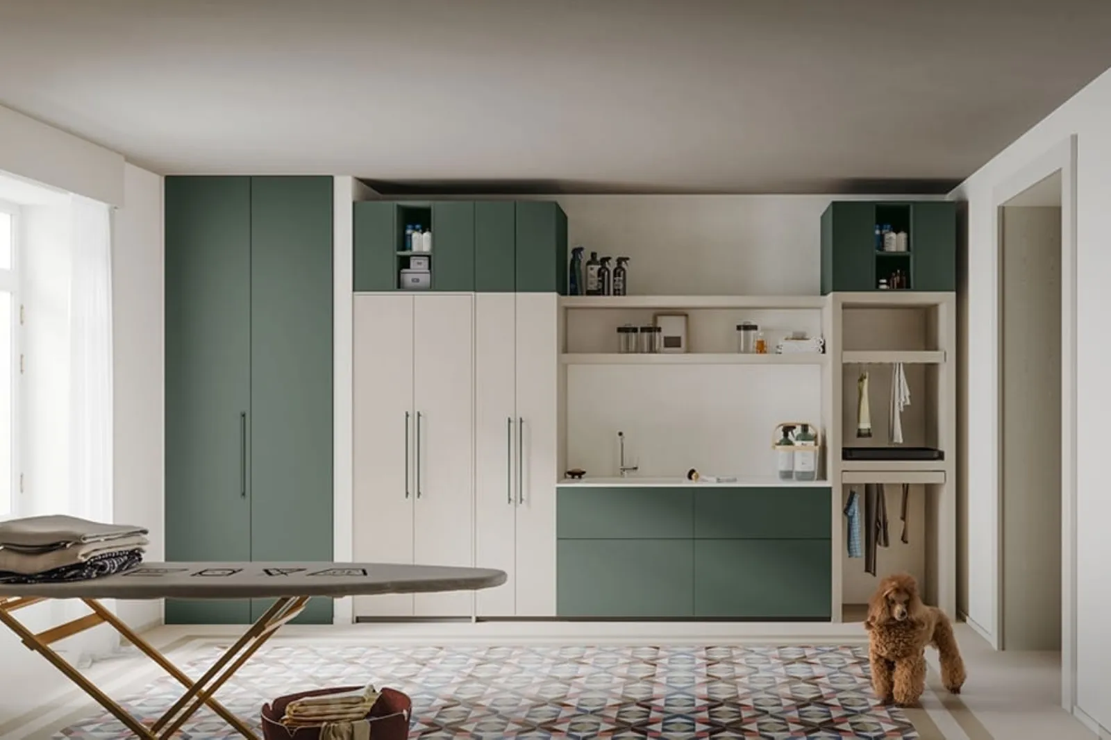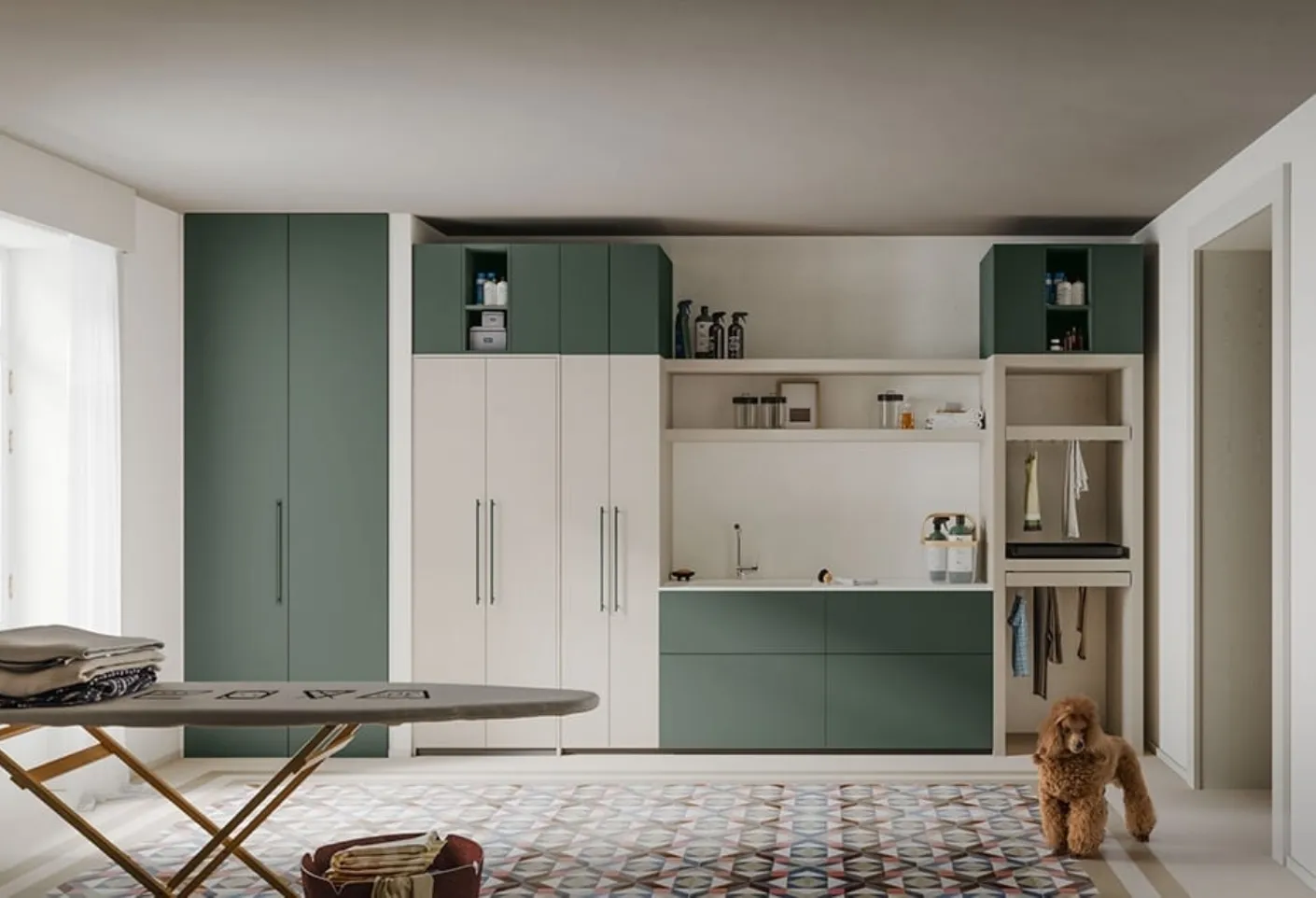 Mobile per Lavanderia Regola 03 di Cerasa: clicca e scopri di più su mobili bagno per lavanderia in melaminico e elementi accessori della firma.