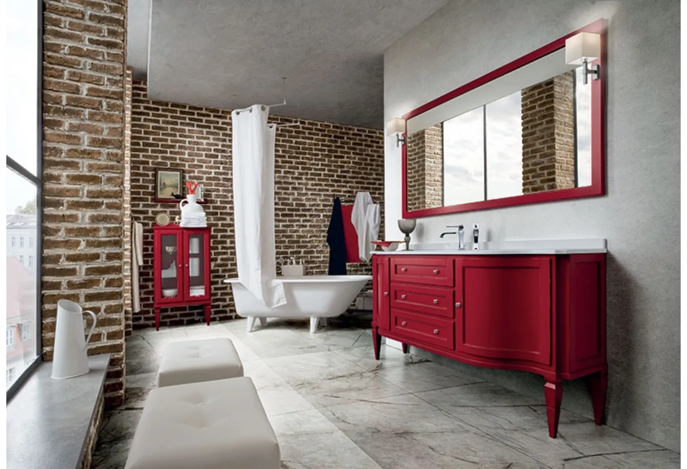 Arreda il bagno di casa classico perfettamente con York 03, mobili bagno a terra e complementi in laccato opaco di Cerasa.