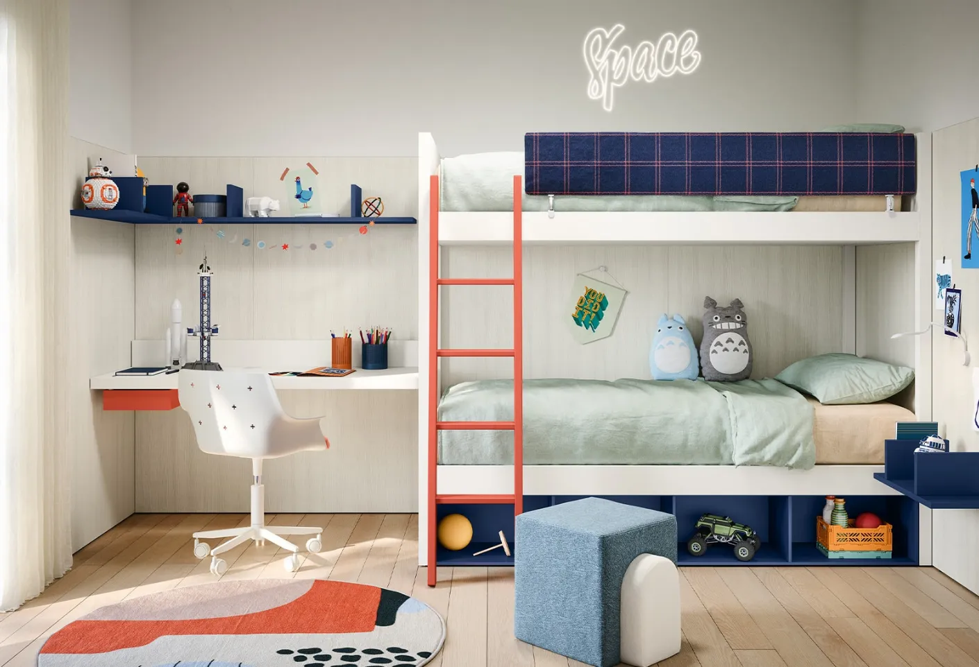 Per decorare al meglio le Camerette, Nidi rende disponibili soluzioni progettuali e versatili: sono varie le attività che i tuoi figli portano a termine lì. Visitarci vuole dire visionare in prima persona tutte le più belle soluzioni per bambini con letti a castello in melaminico che proponiamo nel nostro punto vendita. Con la Cameretta con letti a castello Camelot di Nidi renderai la stanza dei tuoi figli un interno davvero vivibile e sicuro, che li seguirà nella crescita. Questa proposta con finitura in melaminico, tra quelle con letti a castello per bambini di Nidi, accontenta le esigenze degli adulti e i gusti dei giovani.