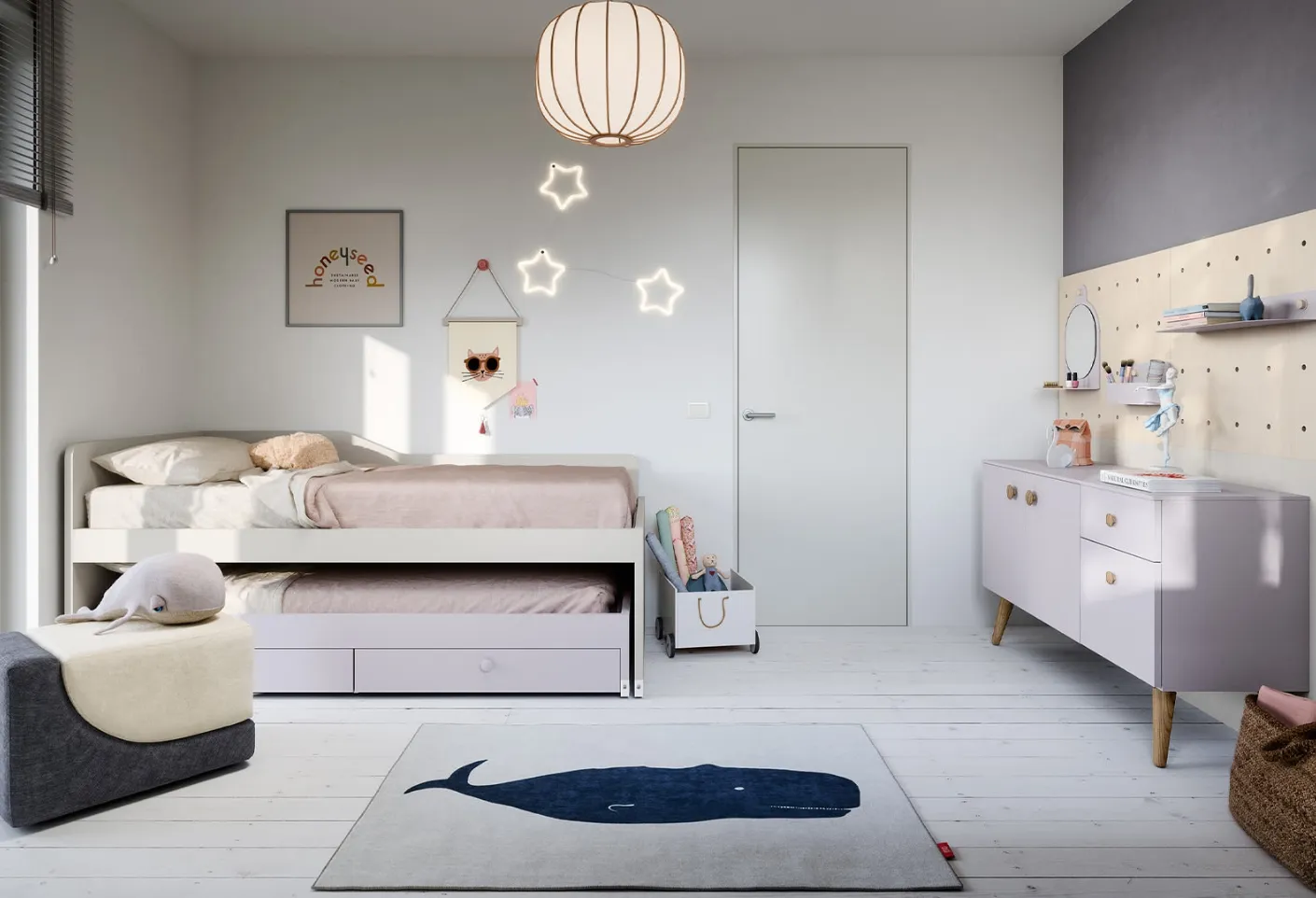 Arreda stanzette moderne con le Camerette salvaspazio Nidi! Il modello Salvaspazio Turca in melaminico è per bambine.