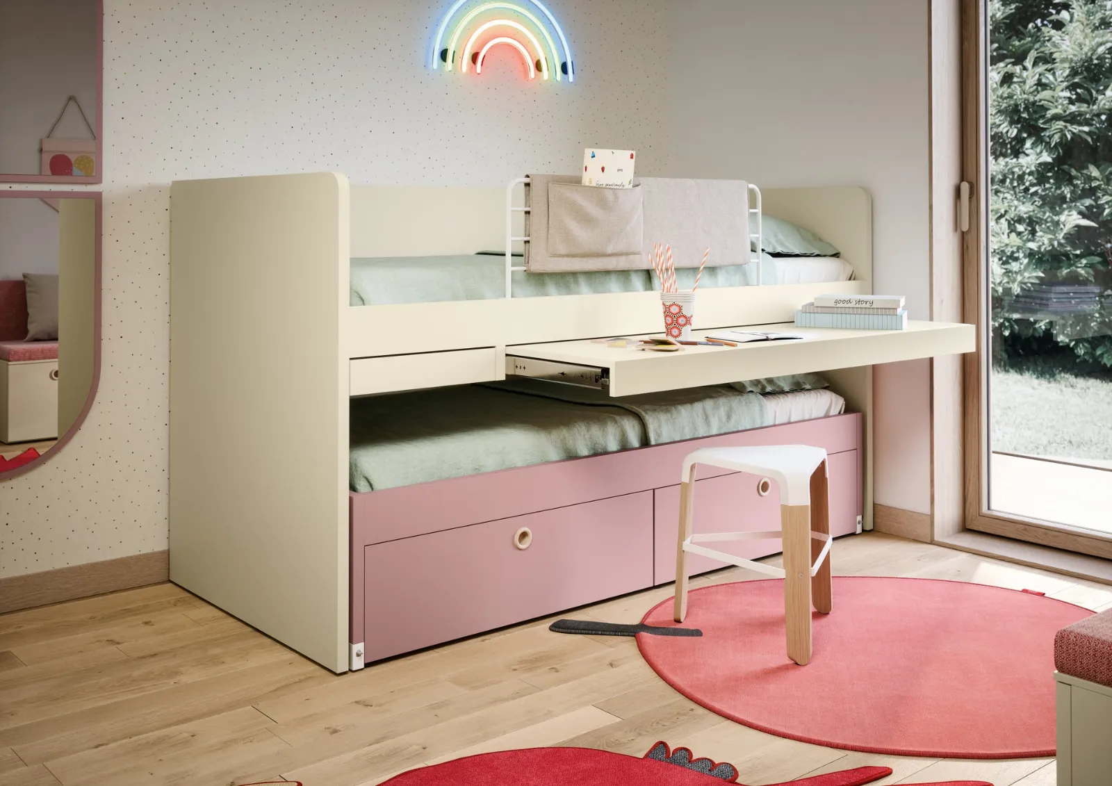 Nell'arredo della stanza dei bambini affidati a noi: in negozio presentiamo tutte le più esclusive composizioni moderne per la loro camera. Nidi offre un ricco catalogo di elementi accessori da comporre su misura: troverai letto, armadio o cabina armadio, scrivania, sedie e librerie. Se cerchi spunti creativi per organizzare perfettamente la stanza dei tuoi bambini, ti presentiamo la Cameretta Salvaspazio Turca di Nidi con finitura in melaminico. Porta valore estetico e cromie vivaci nella stanza dedicata ai più piccoli con questa proposta, una delle Camerette salvaspazio per bambine di Nidi.