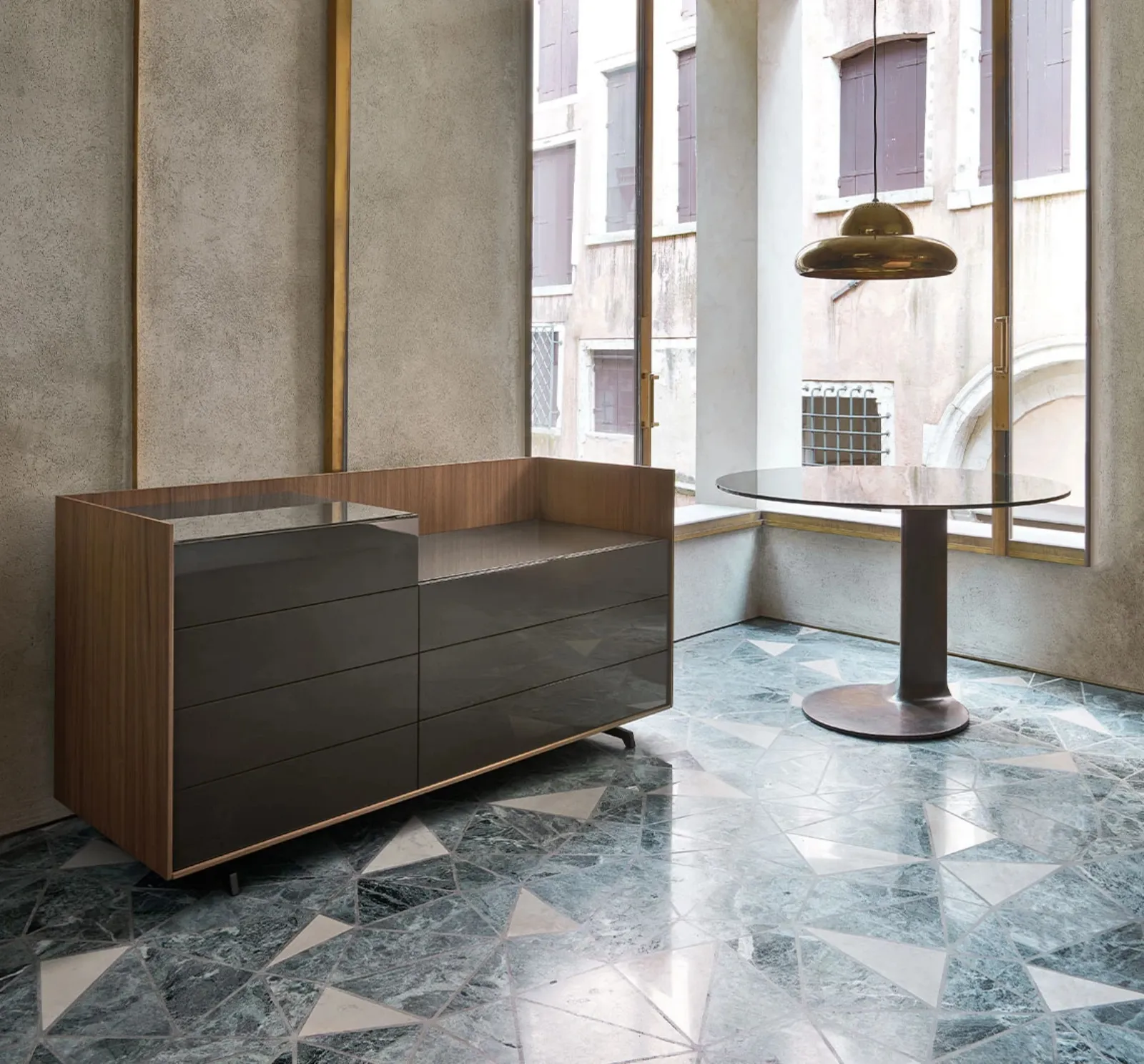 Un ricco catalogo di cassettiere Sangiacomo: i comodini design in laccato lucido, come Cabaret Glass Comò, sono tra le soluzioni più esclusive.