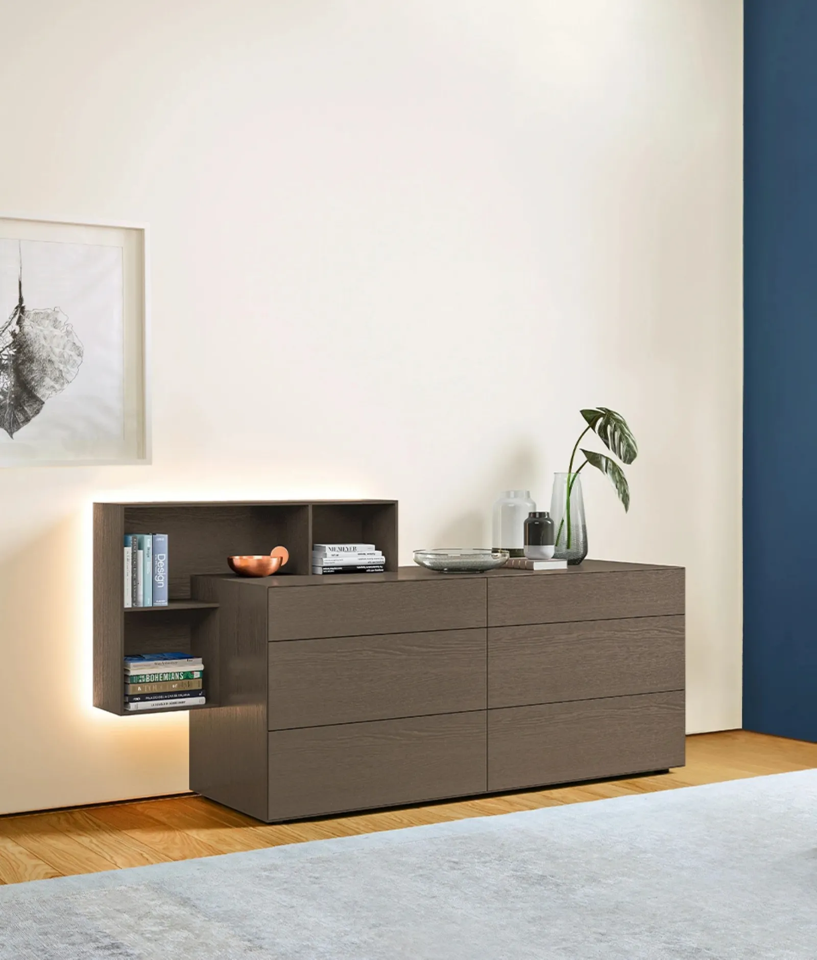 Grazie a questi accessori di arredo possiamo ordinare piccole cose necessarie o esporre accessori. Ottieni informazioni sulla nostra serie di gruppi notte dei migliori produttori per arredare l'ambiente con un design unico. Comò Domino Componibile di Sangiacomo: si tratta di un tipo di elemento per contenere versatile e capace di assicurarti praticità e grande valore estetico in spazi design. I modelli in legno della firma Sangiacomo, specialista nella produzione di armadi e comò, permettono di ricreare abbinamenti ad hoc ma anche avere caratteristiche in voluto contrasto con i restanti oggetti d'arredo e mobili.