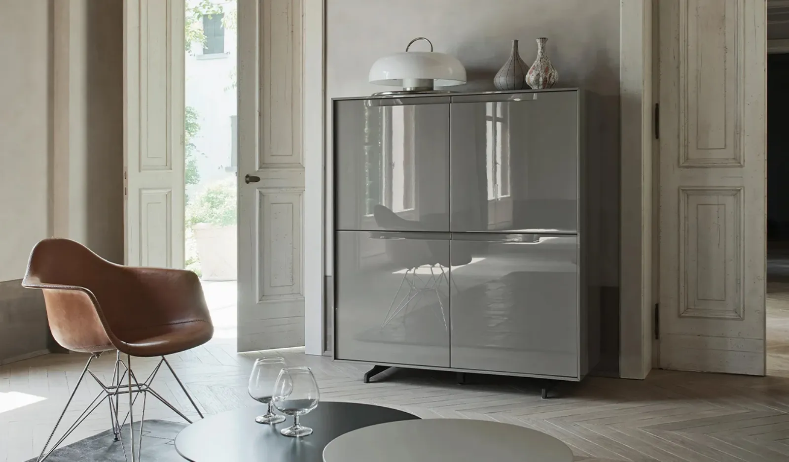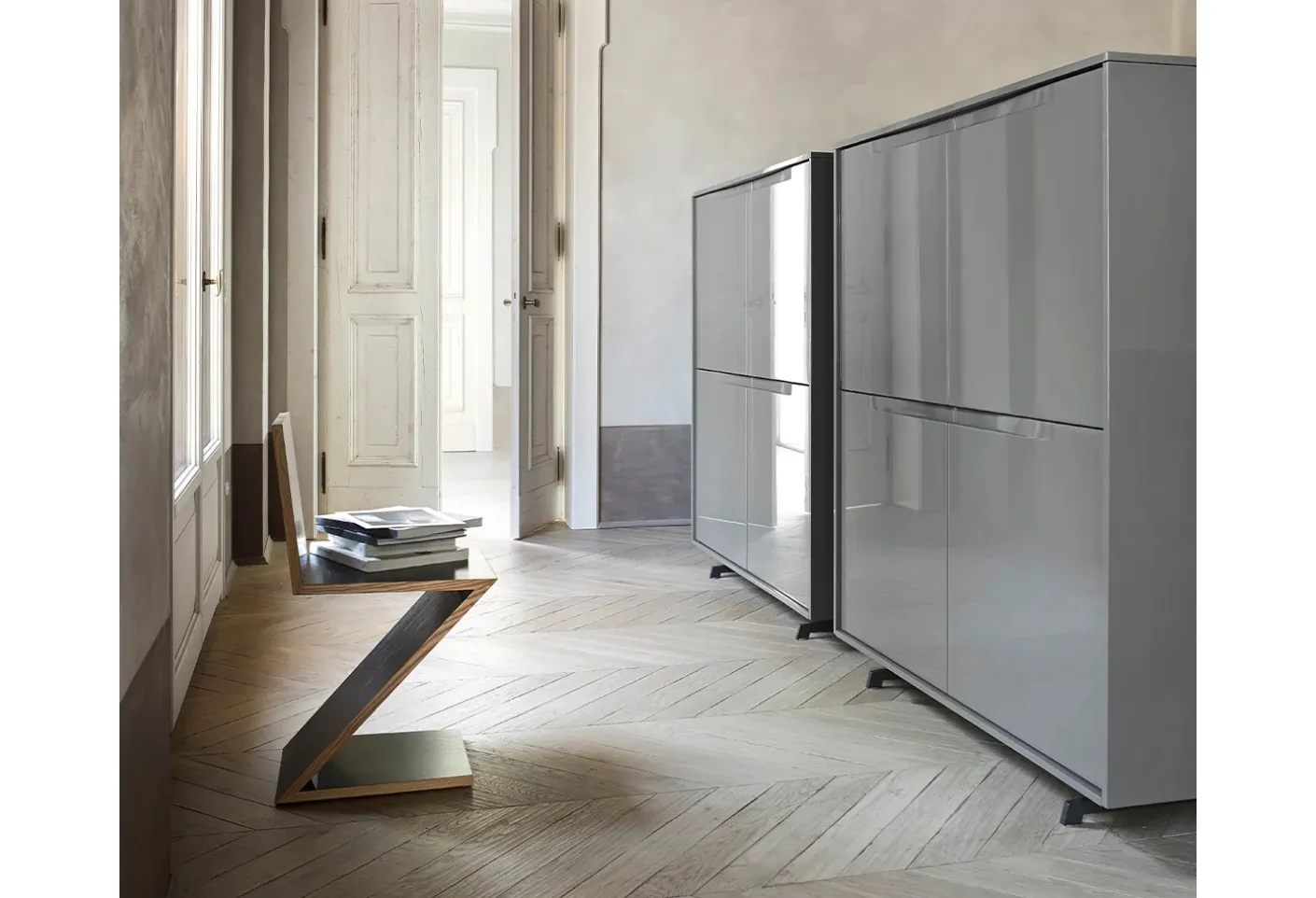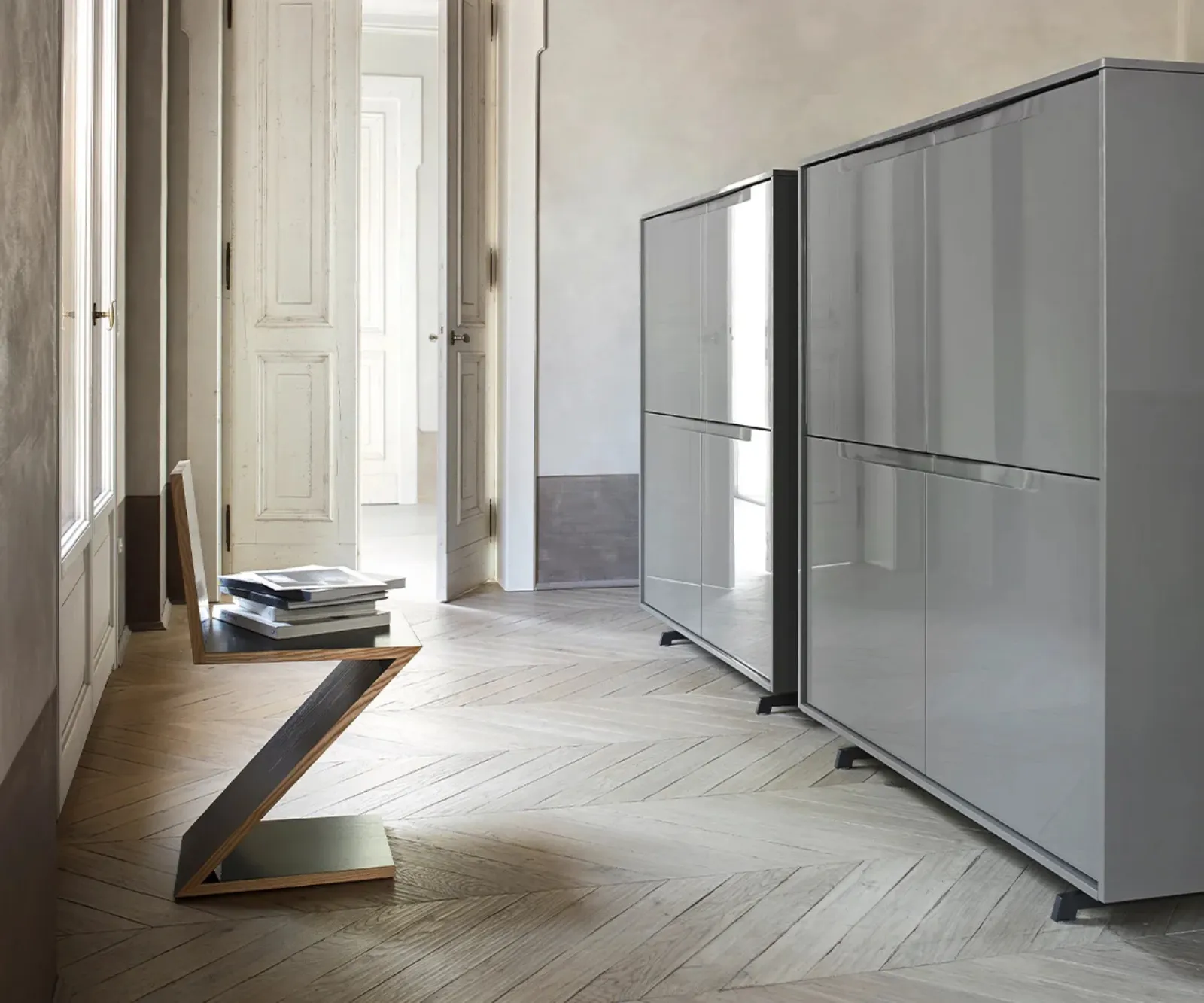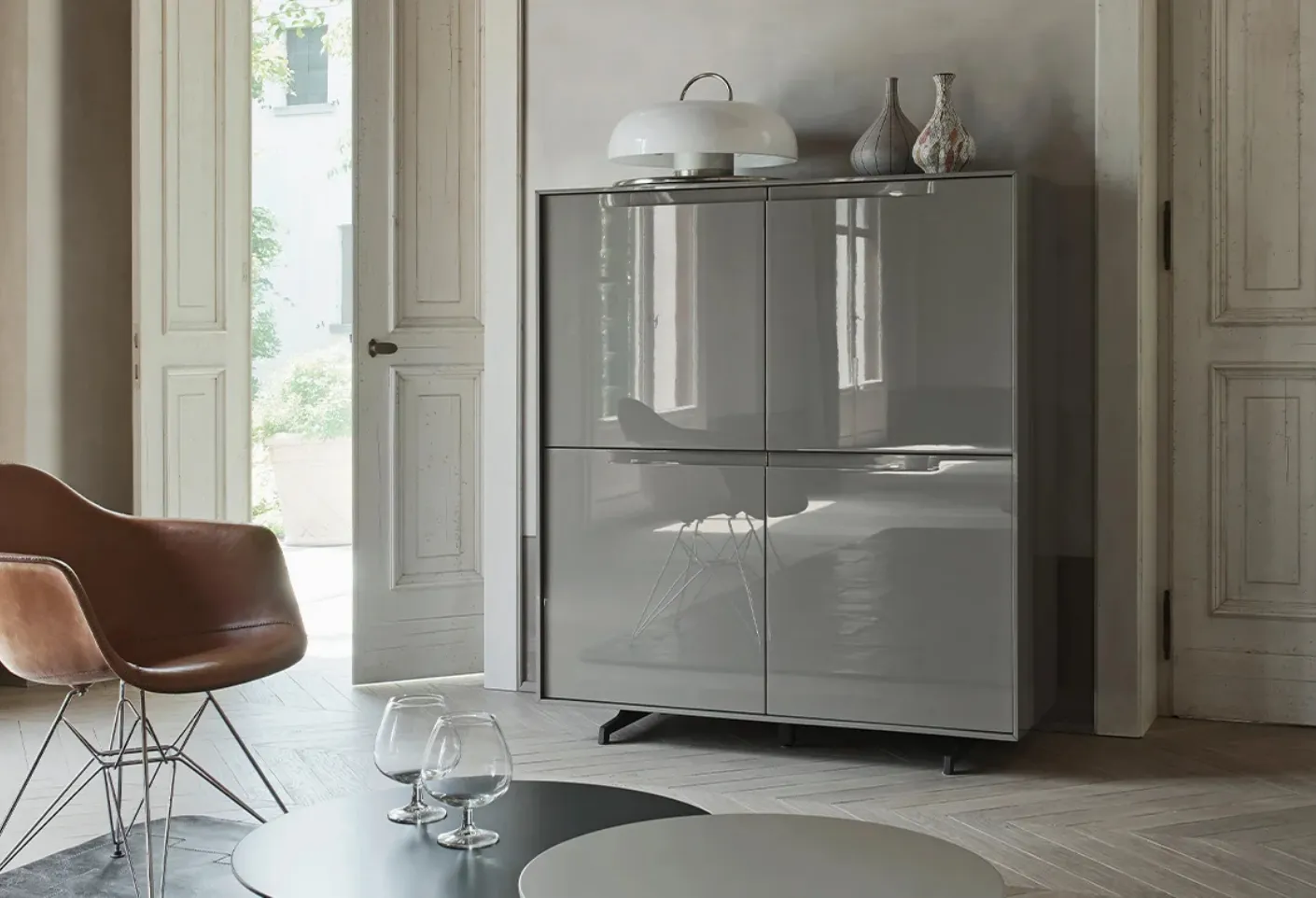 Clicca e scopri la madia Vela 03 Sangiacomo: se desideri mobili in laccato lucido per stanze moderne, questa è la scelta ideale per te!