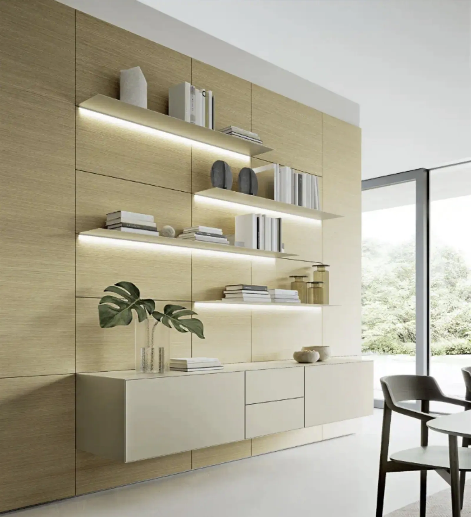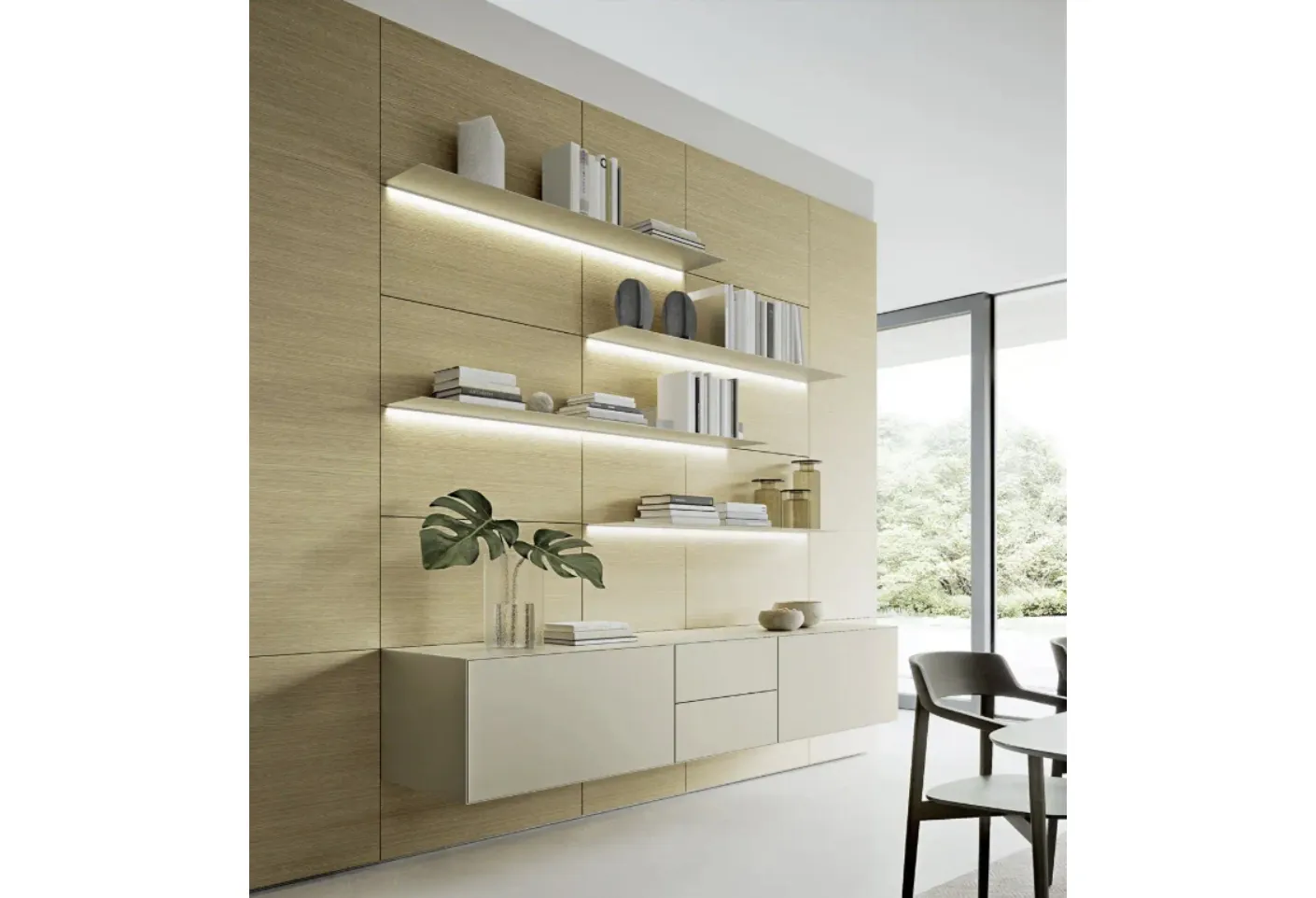 Clicca e scopri di più sulla parete attrezzata Domino Boiserie 01 della firma Sangiacomo: è la soluzione dalle linee moderne ideale per te.