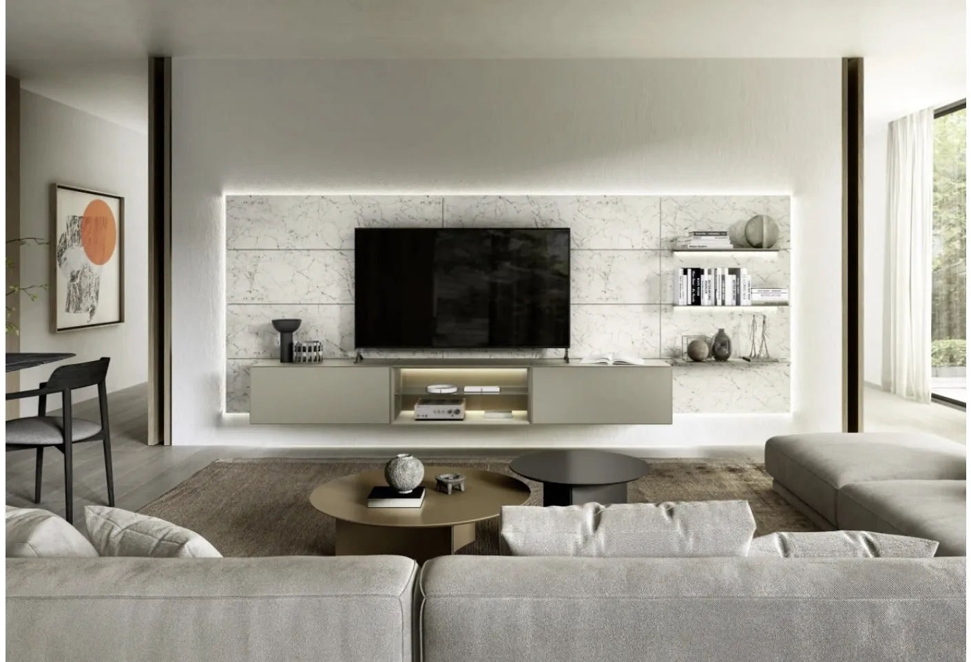 Per informazioni e preventivi sulla Parete Attrezzata Domino Boiserie 05 di Sangiacomo in foto contattaci! Il modello proposto è realizzato in laccato opaco, ma grazie ad una vasta scelta di texture, cromie e forme, potrà adattarsi a stili di ogni tipo. Attraverso un gioco dinamico di accostamenti fra elementi a giorno o vani chiusi, le Pareti Attrezzate moderne arredano il soggiorno usufruendo al meglio di ogni spazio. Questa parete attrezzata è una delle soluzioni della marca e ti permetterà di progettare la zona giorno seguendo le più particolari problematiche abitative.