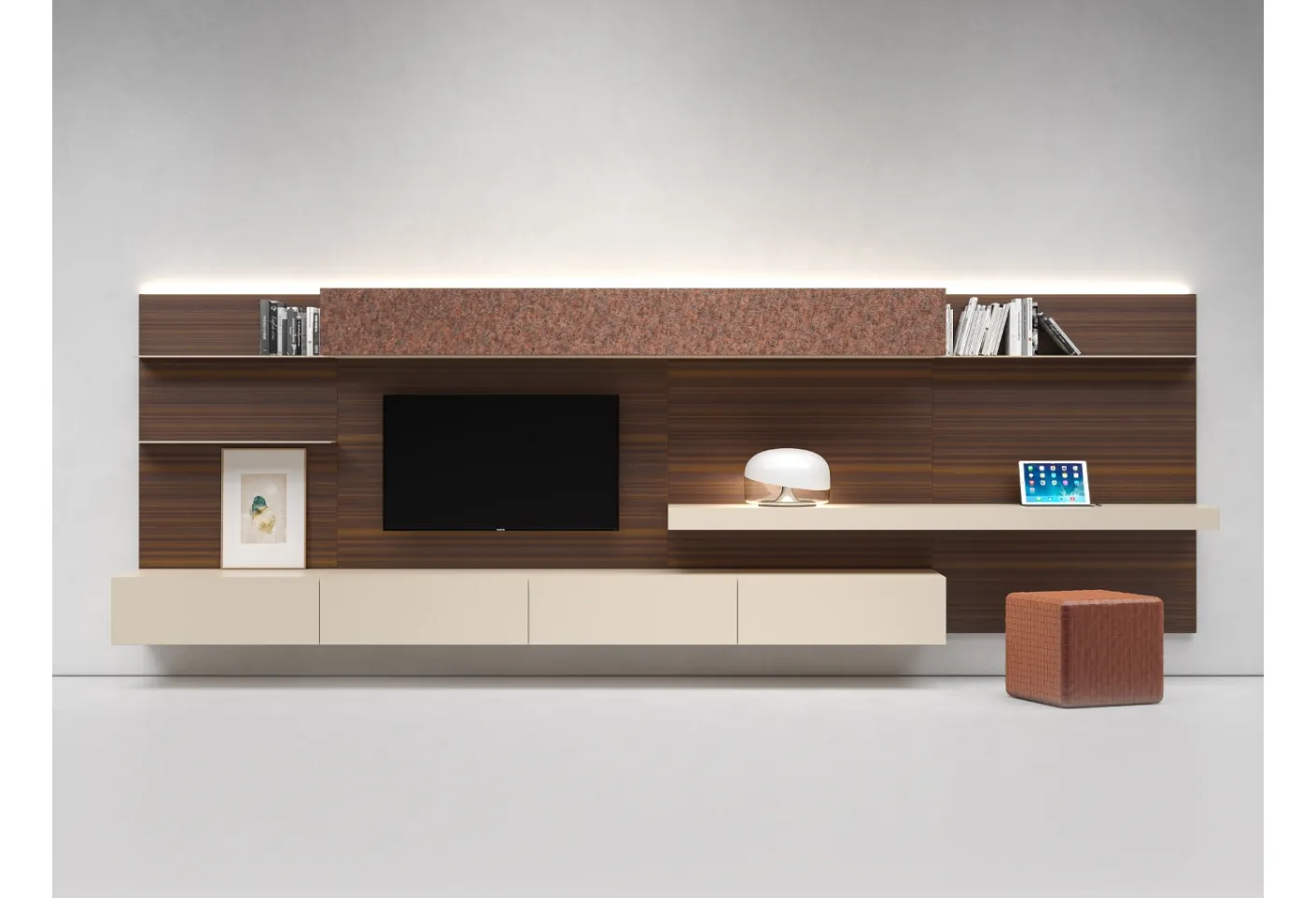 Pareti attrezzate e pensili Presotto: clicca e scopri il modello I-ModulART G e potrai valorizzare stanze moderne di ogni genere.