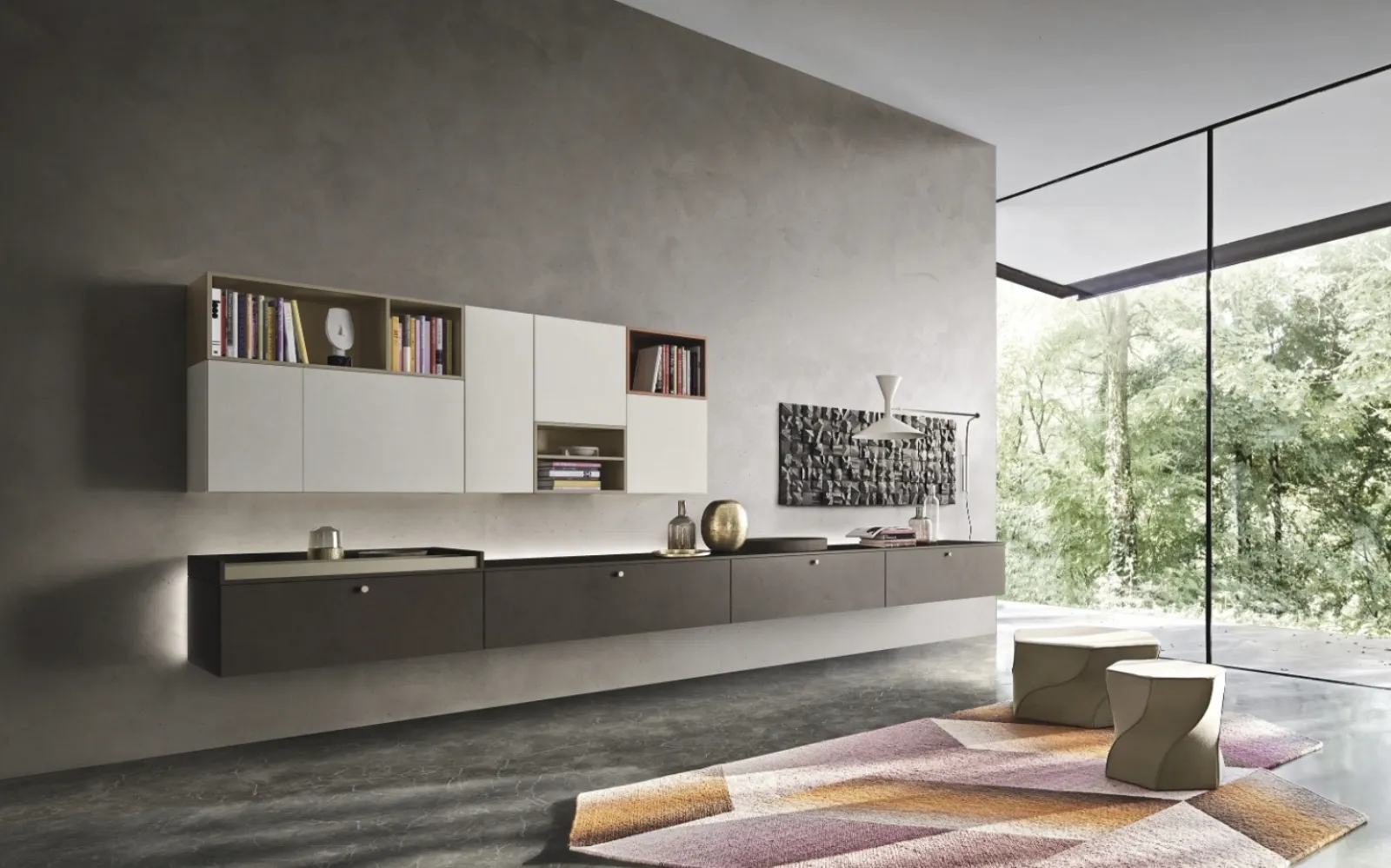 Vuoi ammobiliare un soggiorno pratico e dinamico? Ti presentiamo la parete attrezzata Lampo 005 Sangiacomo dalle forme decise moderne.