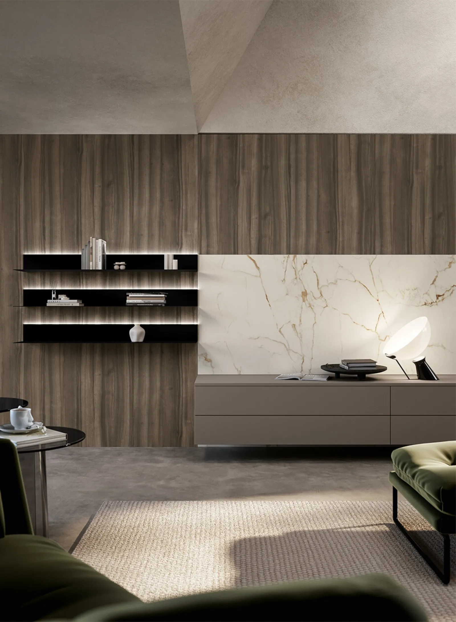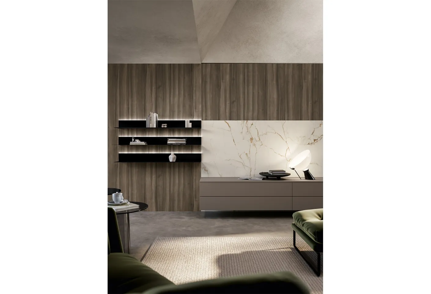 Per informazioni e preventivi sulla Parete Attrezzata Living Cloe di Arredo3 nella fotografia contattaci! Il modello proposto è realizzato in laccato opaco, ma grazie ad un'infinità di texture, cromie e forme, potrà adattarsi a stili di ogni tipo. Attraverso un gioco dinamico di accostamenti fra elementi a giorno o vani chiusi, le Pareti Attrezzate moderne arredano il soggiorno sfruttando bene ogni spazio. Le Pareti Attrezzate hanno acquisito un posto fondamentale nella zona giorno delle nostre case: sono mobili multifunzionali e salvaspazio sempre realizzabili su misura per te.