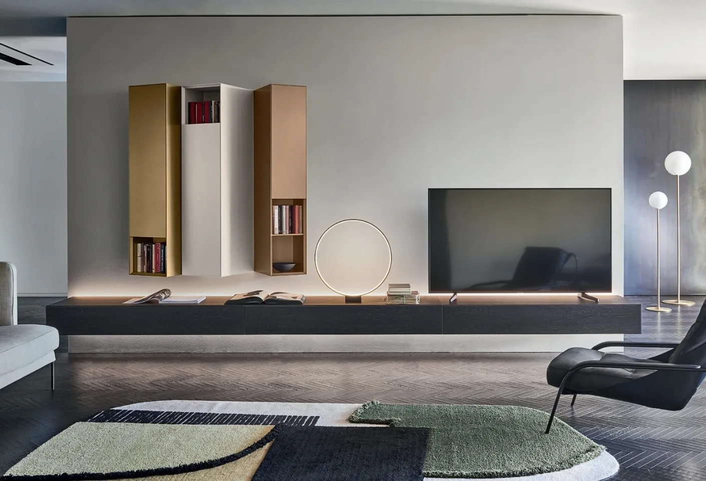 Anche in un living non troppo grande, questo tipo di arredo riesce a organizzare al meglio gli spazi valorizzando ogni angolo e garantendo l'alta componibilità tipica delle soluzioni moderne. Se cerchi mobili salvaspazio e realizzabili su misura, contattaci e scopri di più sull'Arredamento Casa delle migliori marche. La Parete Attrezzata Domino 01 di Sangiacomo nell'immagine, realizzata in legno, risolve le più personali esigenze abitative di spazio e stile senza rinunciare alla ricerca estetica. Un po’ librerie, un po’ contenitori ed espositori: le Pareti Attrezzate sono ideali per arredare un luogo pratico e dinamico.