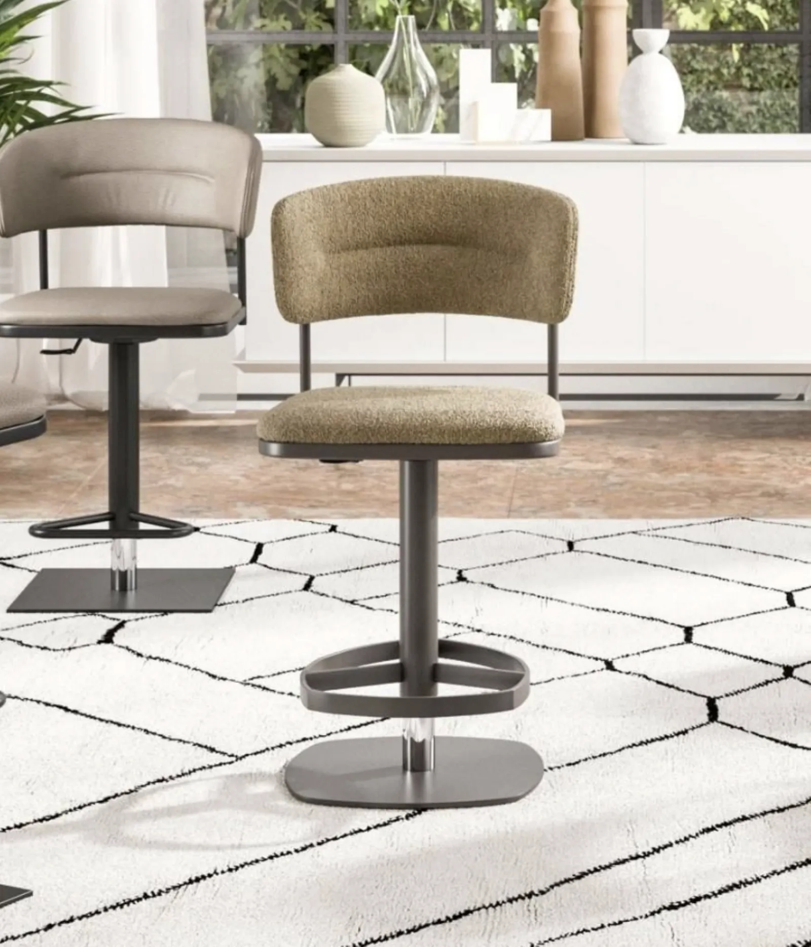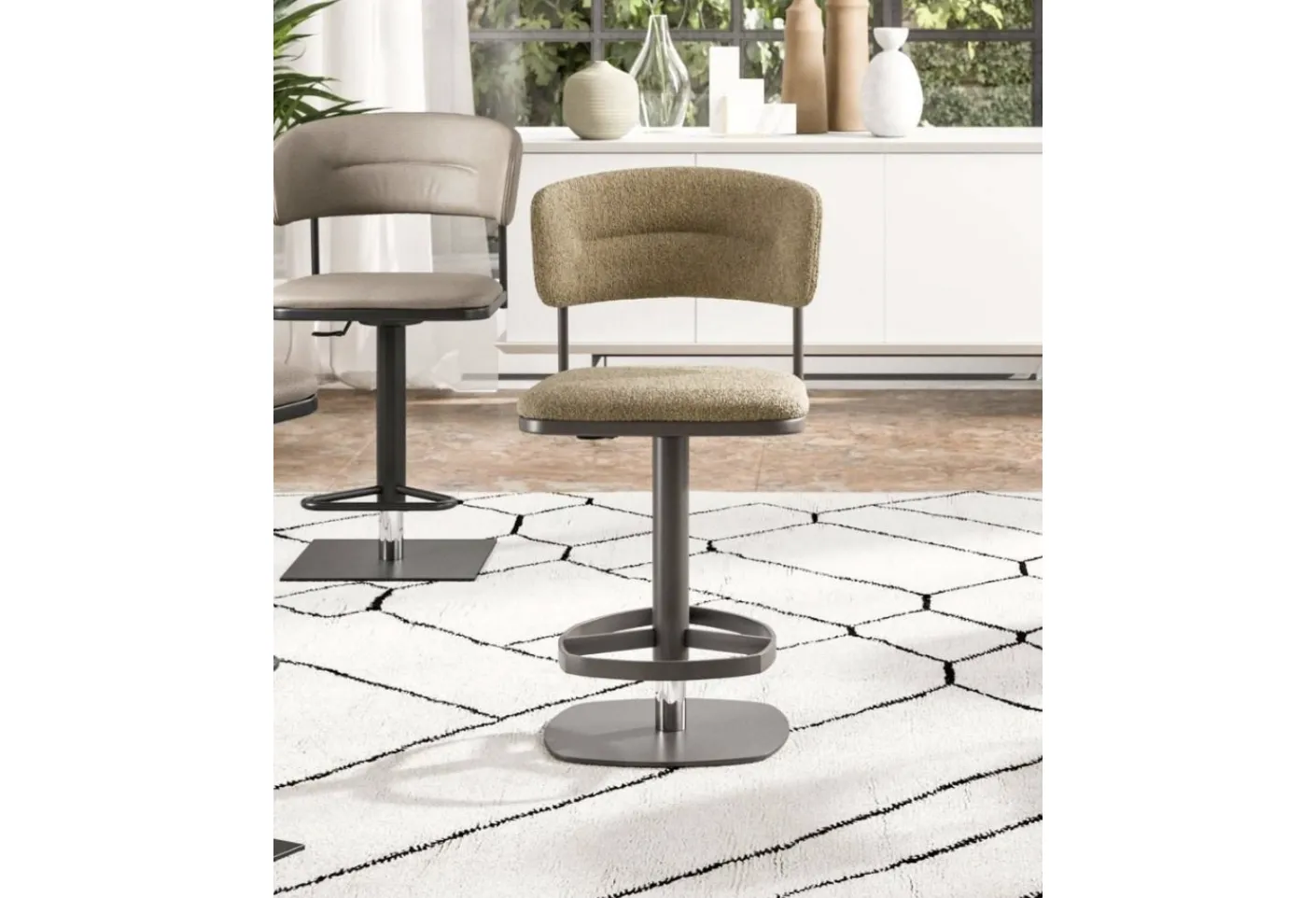 Con questa sedia Sgabello Persy Ozzio in tessuto, una tra le nostre sedute sgabelli moderne, potrai arricchire i tuoi interni.