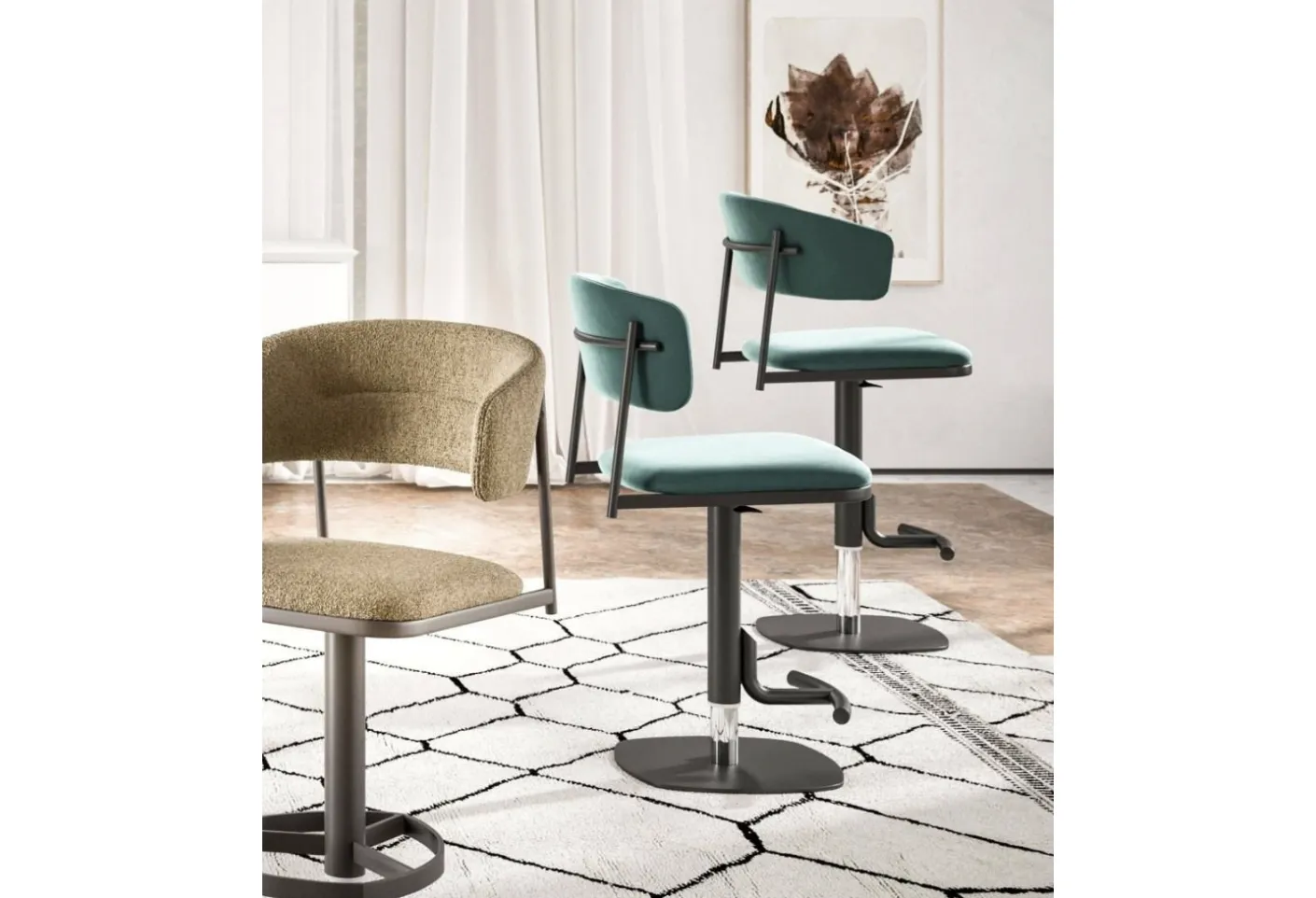 Una vasta gamma di sedie sgabelli da cucina ti aspetta nel nostro showroom: contattaci per info e preventivi e valorizza i tuoi interni con l'eccellenza che solo Ozzio sa garantirti per mobili e oggetti accessori. Sgabelli in tessuto Adam e Alida di Ozzio: questo modello andrà ad impreziosire spazi di ogni tipo, in modo particolare ambientazioni moderne. Nel living o nella zona cucina, le Sedie sono arredamenti essenziali: definiscono lo stile dell'ambiente e assolvono a un ruolo imprescindibile. Se desideri una sedia in tessuto per completare l’atmosfera di casa, scopri di più sul modello nell'immagine e trova un tavolo abbinato.