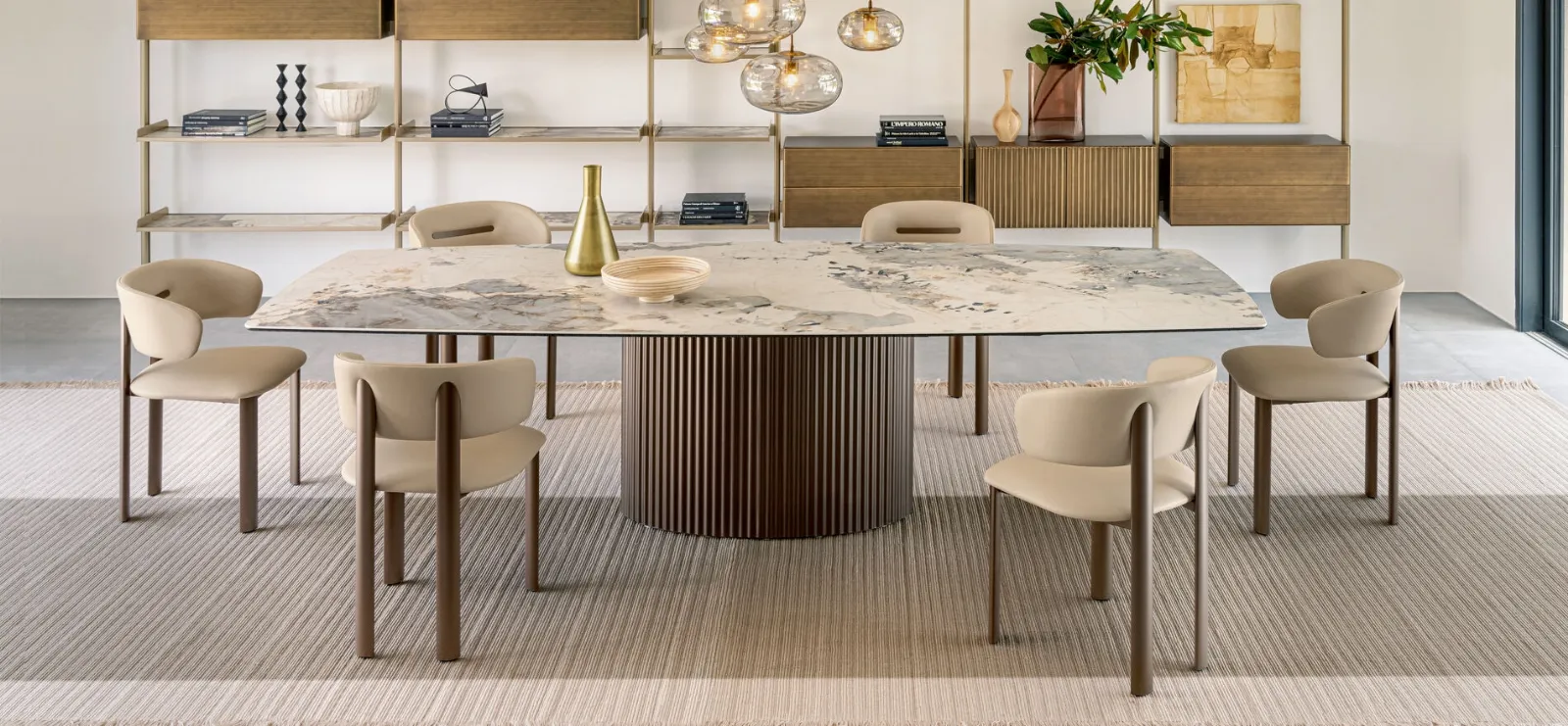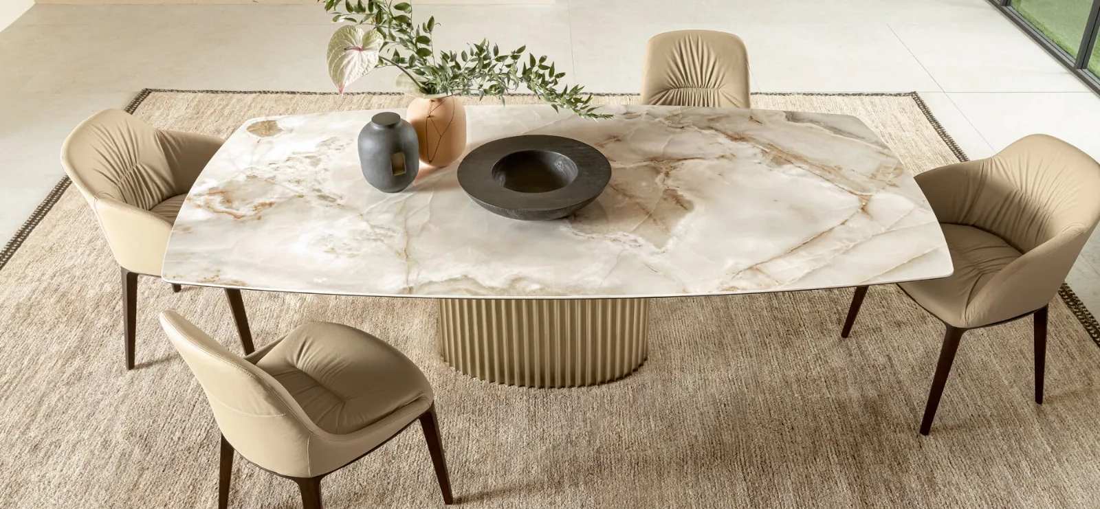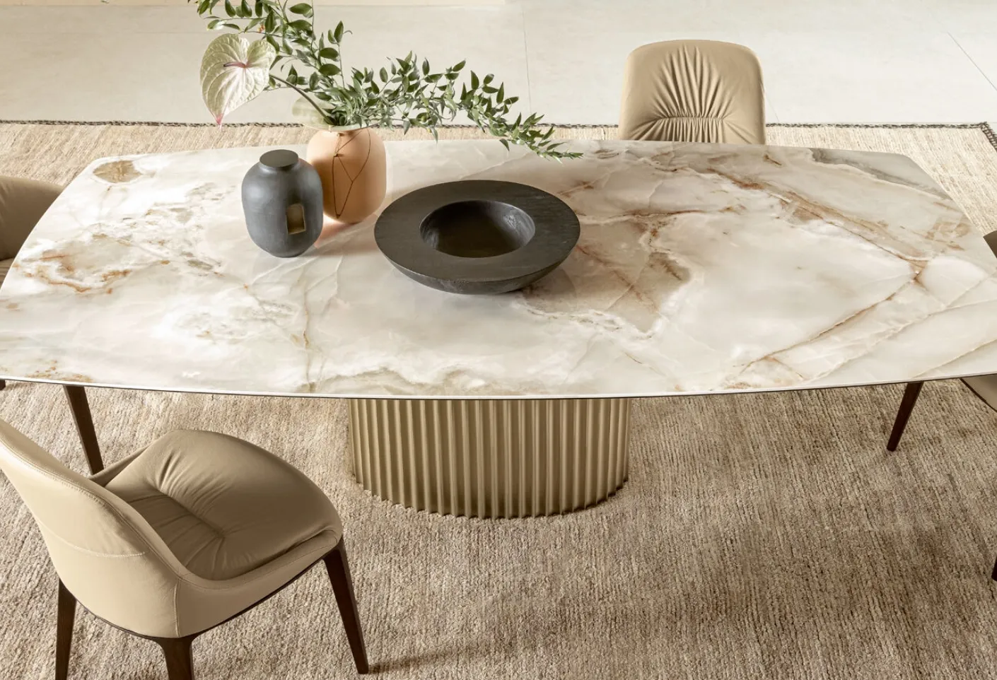Se sei alla ricerca di tavoli design da pranzo, scopri i modelli fissi di Riflessi: clicca e scopri il modello Enea in ceramica.