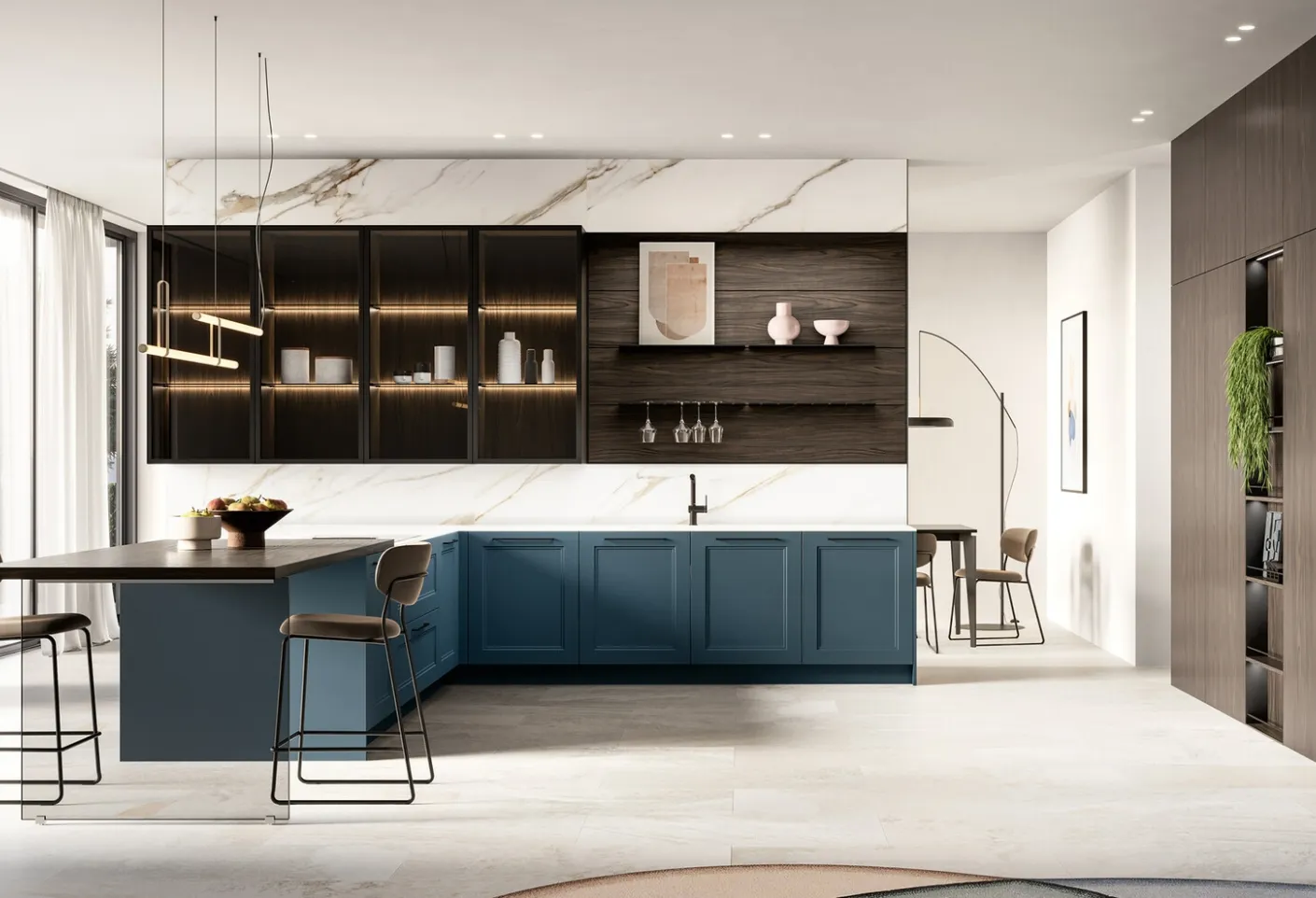 Scopri una ricca gamma di Cucine Moderne con penisola dei migliori produttori: abbiamo selezionato per te le più originali soluzioni Arredo3, caratterizzate da linee decise e massima componibilità. Se vuoi una composizione in laccato opaco, ti suggeriamo il modello mostrato in foto: materiali di qualità e finiture di tendenza sono assicurati. Con la Cucina Moderna con penisola Meg 01 di Arredo3 potrai organizzare gli spazi valorizzandoli appieno, coniugando perfettamente peculiari doti di praticità e linee ben studiate.