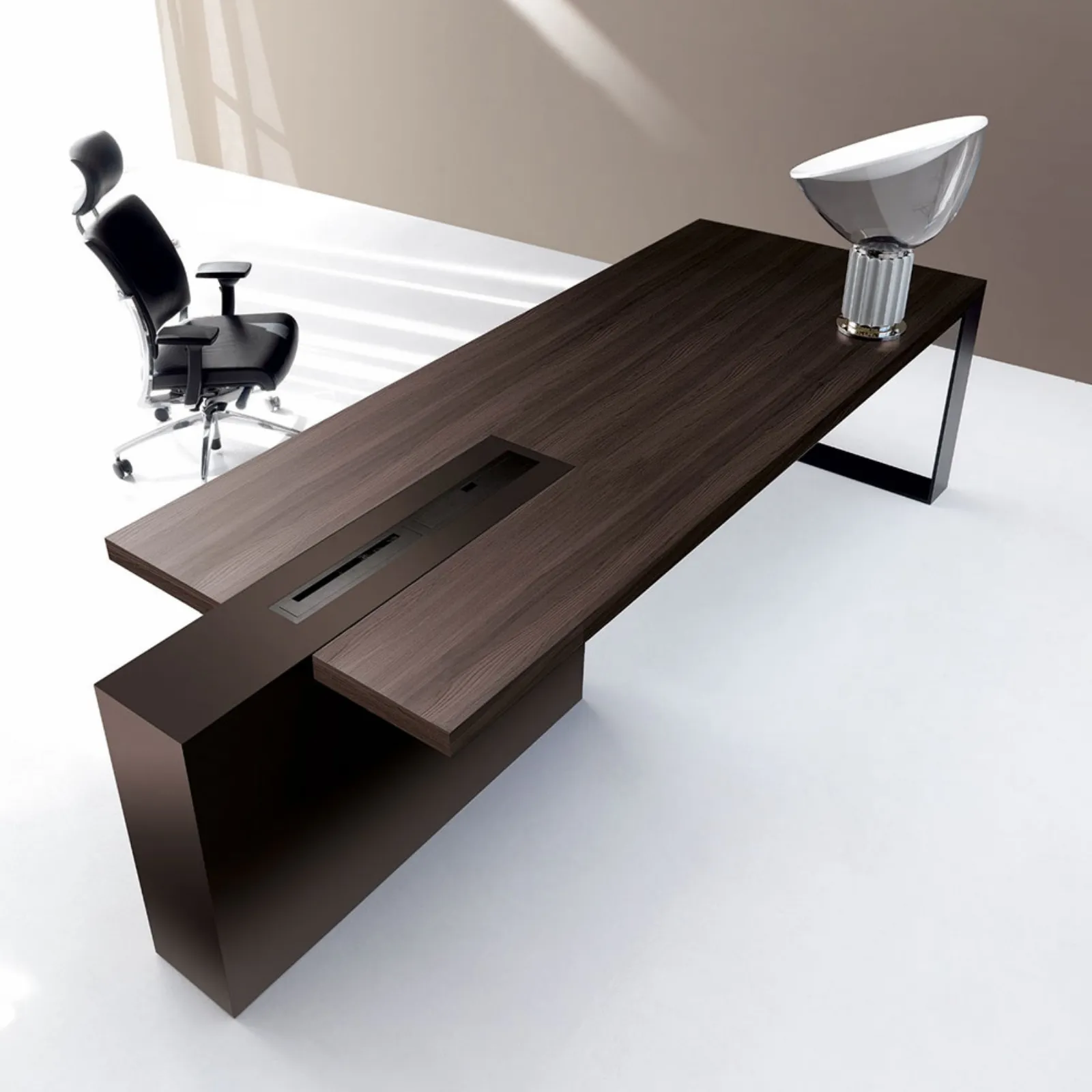 Cerchi Arredo Ufficio delle migliori marche? Scopri le diverse proposte di scrivanie direzionali in legno, come il modello New Loop Scrivania Noce di IVM.